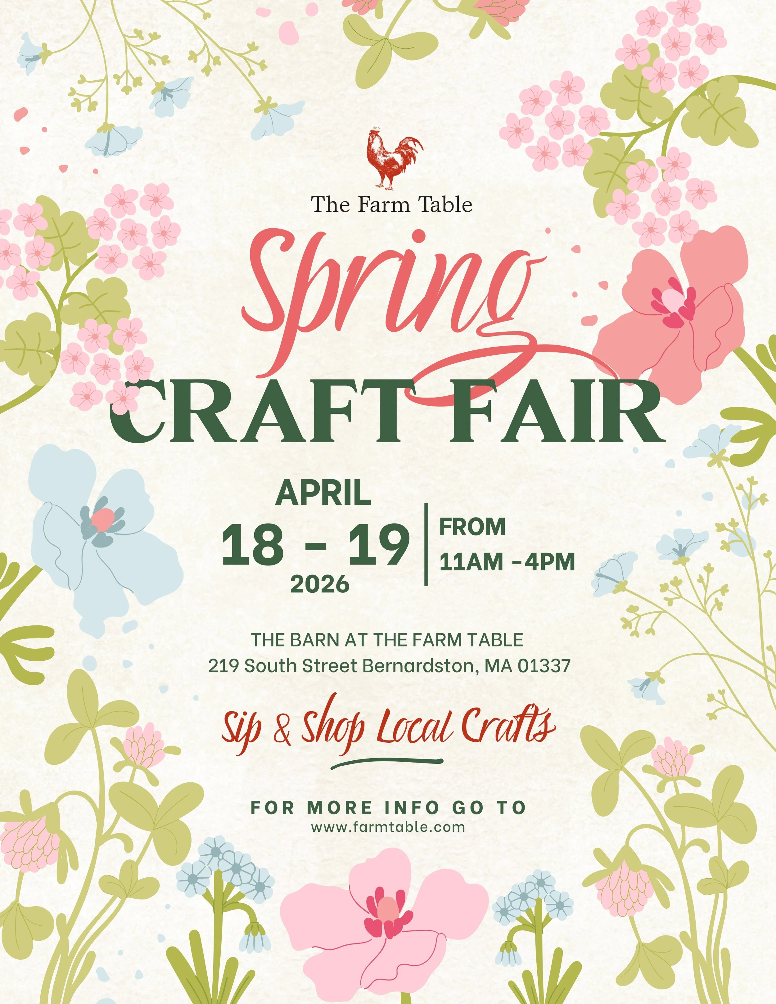 We’re so excited to share that our Sip and Shop Spring Craft Fair is coming to The Barn at The Farm Table on April 18th & 19th and it’s going to be such a beautiful weekend celebrating creativity and community.